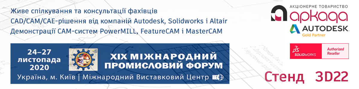АРКАДА візьме участь XIX Міжнародному промисловому форумі, який пройде в Києві з 24 по 27 листопада 2020 року. Запрошуємо Вас відвідати наш стенд 3D22 і подискутувати «вживу» про тенденції і рішеннях для машинобудівного проектування та виробництва.