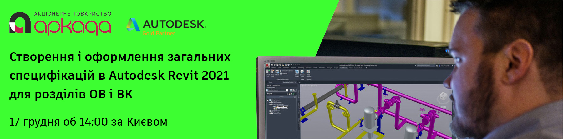 ПрАТ «Аркада», золотий партнер компанії Autodesk, запрошує Вас взяти участь у вебінарі, присвяченому тонкощам створення і оформлення специфікацій в Autodesk Revit 2021 для інженерів-проектувальників розділів ОВ і ВК на прикладі дев’ятиграфки.
